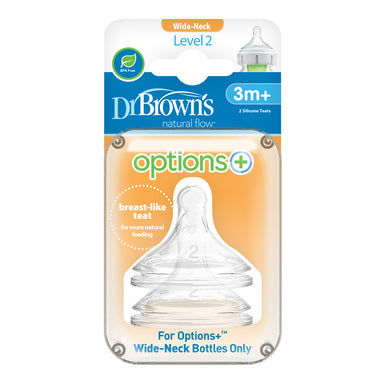 View full detailsThe uniquely designed Dr. Brown’s Natural Flow® Options+™ Level 2 Wide-Neck Teat is a medium-flow teat, perfect for babies whose feeding has develo...