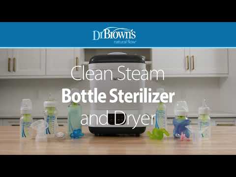 - Steam clean, dry, store and more! The Dr. Brown’s™ Clean Steam Bottle Steriliser and Dryer offers the total package. Steam sterilise and dry up to six baby bottles at once, plus breast pump parts, soothers, and teethers.
